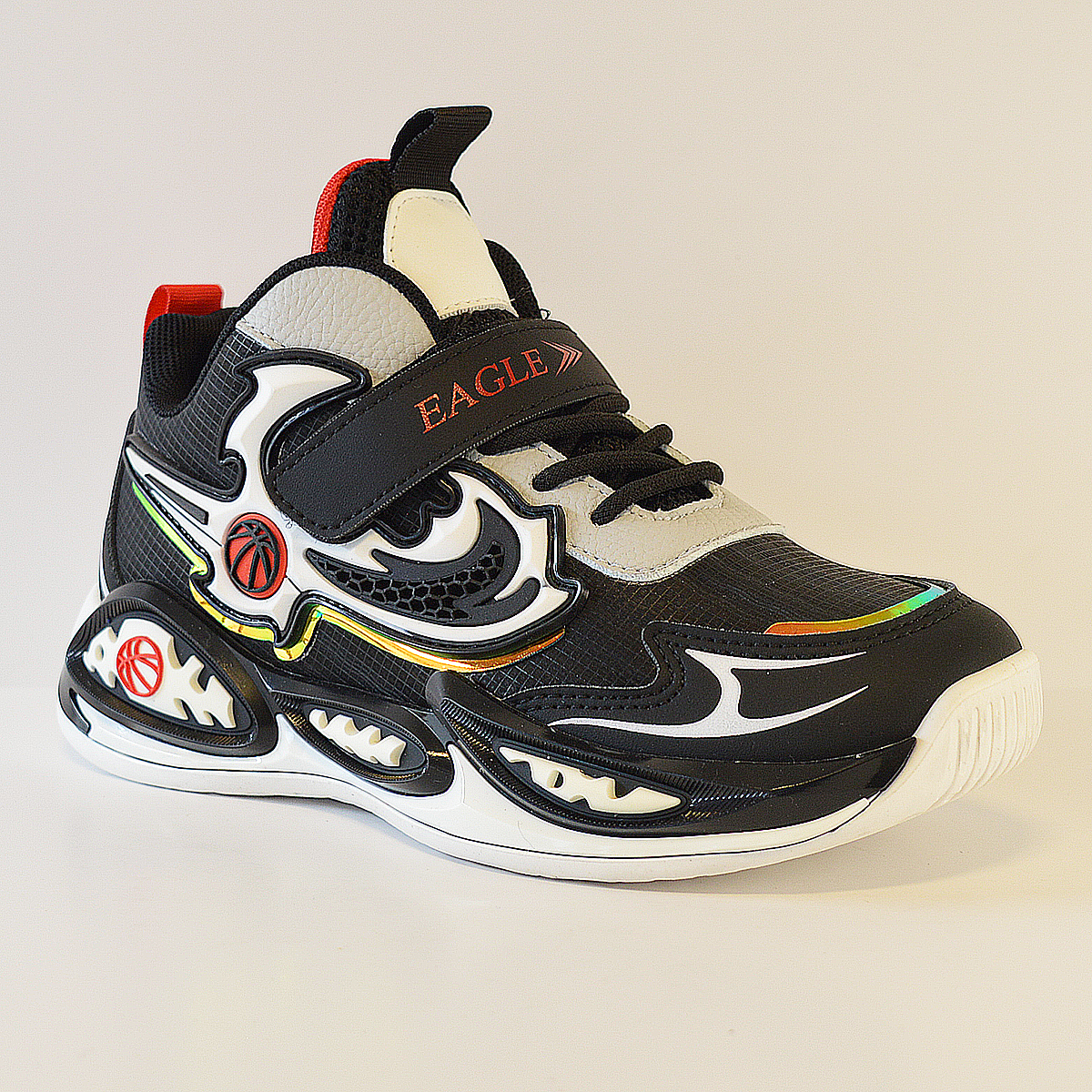 Zapatillas Kids Eagle E8123 destaca su diseño moderno, colorido y deportivo, cuenta con cierre combinado de cordones elásticos y tira de velcro.